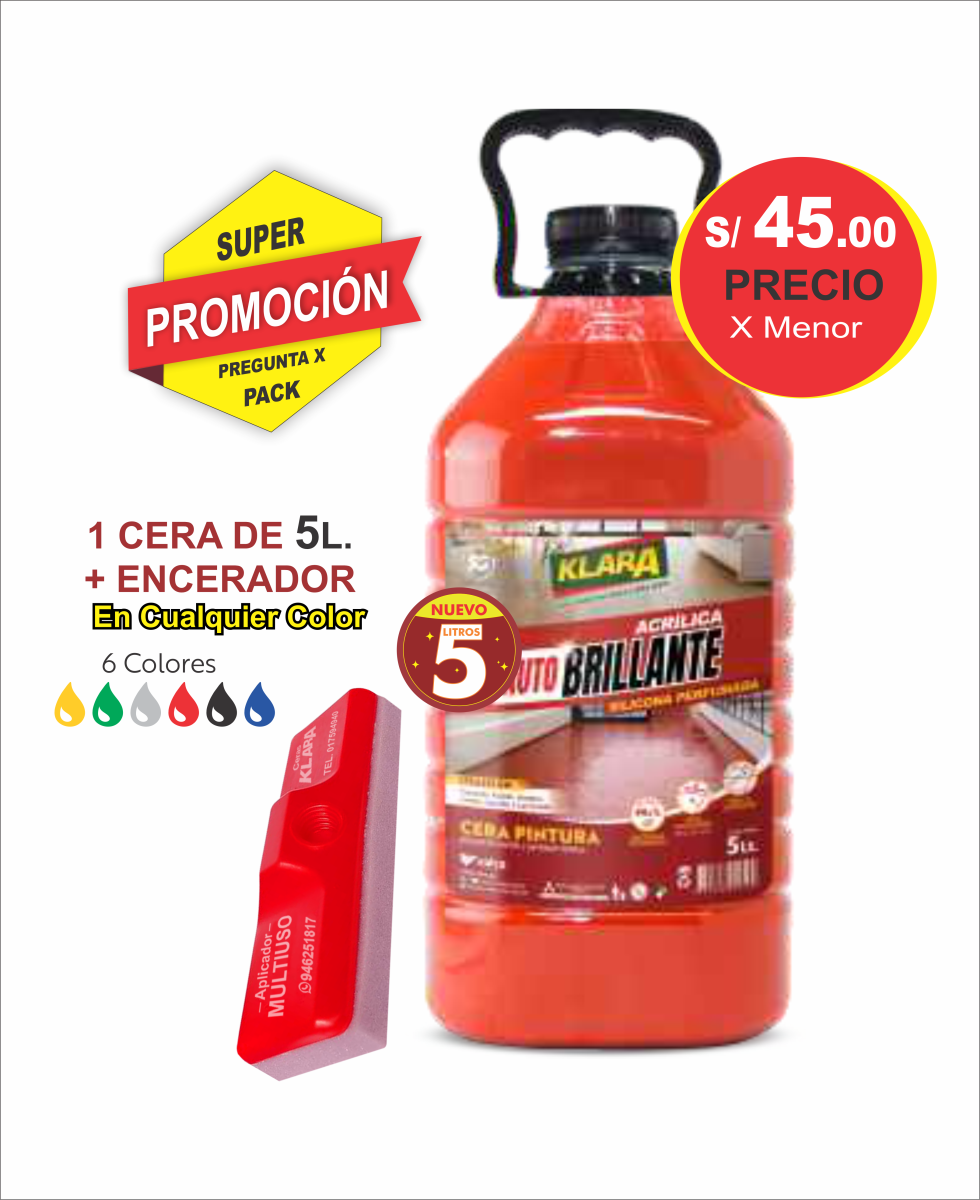 PACK CERA ACRILICA AUTOBRILLANTE KLARA 5L.